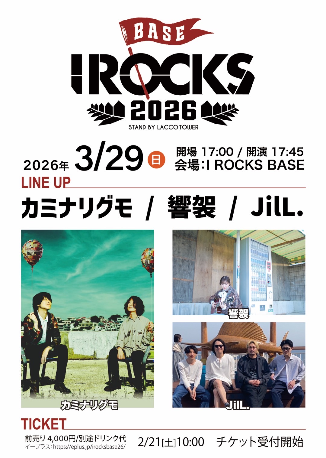 LACCO TOWER主催イベント「I ROCKS 2026」BASE編に出演!現体制のカミナリグモとしては初の群馬ライブです。是非県内外からご来場ください。