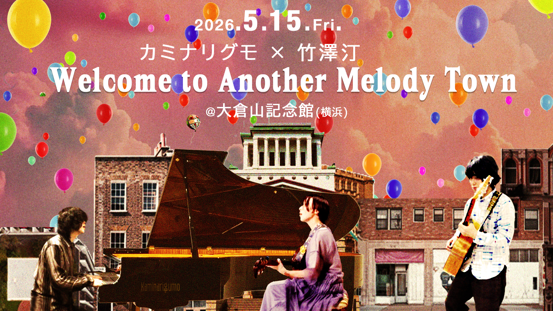 カミナリグモ15周年にリリースした「Another Trip」「Another Treasure」に続いて、最新作「Melody Town」にも参加していただいた竹澤汀さんとのツーマンイベントを企画!グランドピアノのあるレトロな小ホールでスペシャルセッションもあります。カミナリグモとしては活動休止前以来、久々の横浜ライブ、是非お越しください。